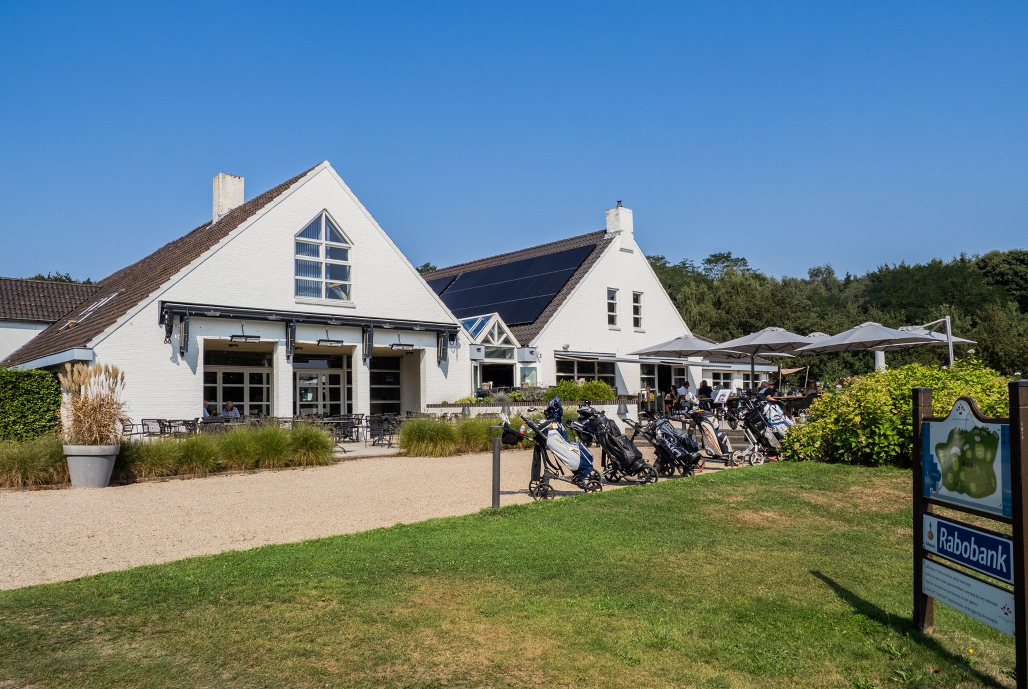 Verspreid over het honderdvijftig hectare grote terrein staan er deze dag tenten met hapjes en drankjes. De golfers worden goed verzorgd! “Met vijfenveertig wedstrijdholes en zes oefenholes zijn we de grootste golfbaan van Nederland. We hebben meer dan tweeduizend leden. Jong en oud, van beginners tot topgolfers. En uiteraard hebben we een bloeiende vereniging en vele competitieteams. En toch is er altijd ruimte voor nieuwe gezichten.”